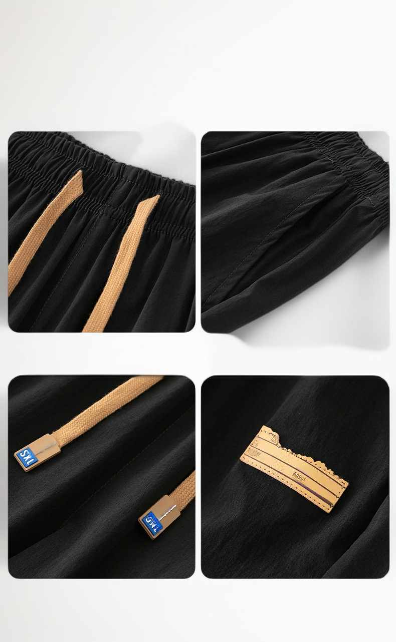 여름용 얇은 아이스 소재로 시원함 제공, 와이드 일자핏으로 편안한 착용감, 빠른 속건 기능으로 쾌적함 유지, 캐주얼 스타일 팬츠.