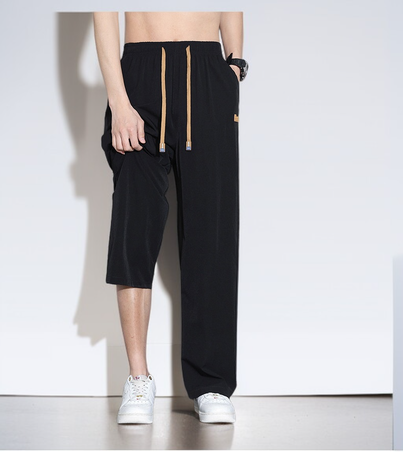 남자 여름 얇은 아이스 트레이닝 팬츠 와이드 일자 캐주얼 팬츠 속건 와이드 아이스 팬츠