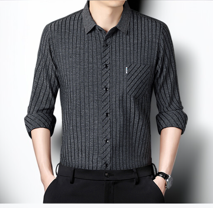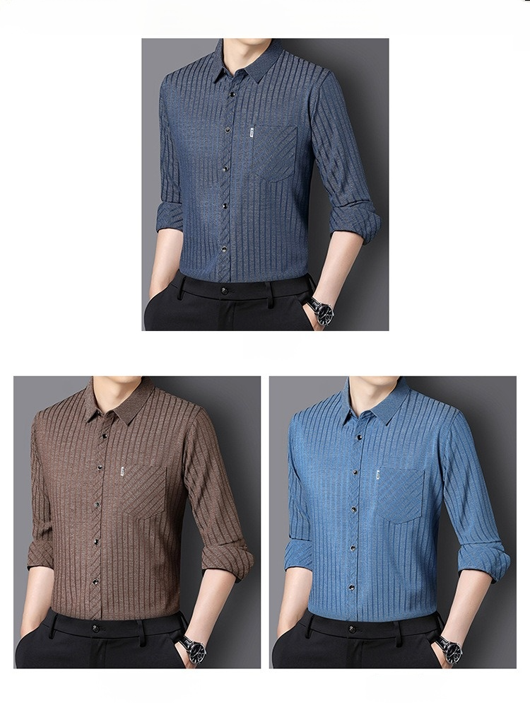 비즈니스 캐주얼 긴팔 셔츠 린넨 스트라이프 뽕나무 실크 셔츠 중년 남성 아빠룩 긴팔 셔츠